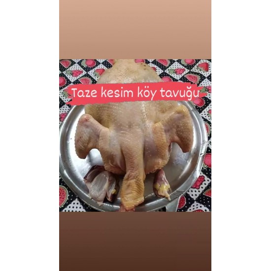 Tamamen doğal yollarla beslenen sağlıklı hakiki doğal köy tavuklarımız 12 dönüm arazi içerisinde özgürce gezerek buğday, arpa, mısır, yonca ve tarla yeşillikleri gibi doğadan gelen doğal besinlerle beslenmektedir. Tavuklarimiz düzenli olarak veteriner hekim kontrolünden geçmektedir. Endüstiriyel kafes tavuğu ile Hakiki köy tavuğu arasındaki farkı anlayabilmeniz için köy tavuklarımızın lezzetini bir kere tatmanız yeterli olacaktır. Bizim tavuklarımızın ağırlıkları 1 adedi yaklaşık 3.000 - 4.000 gr arasi gelmektedir.